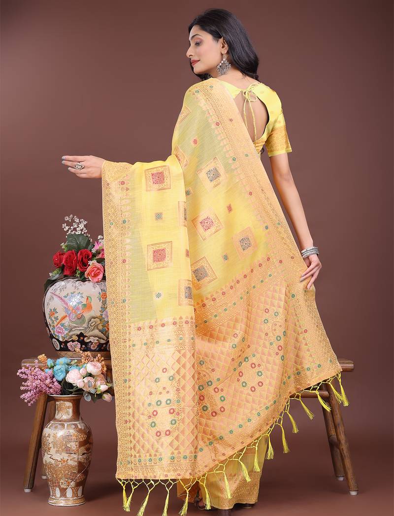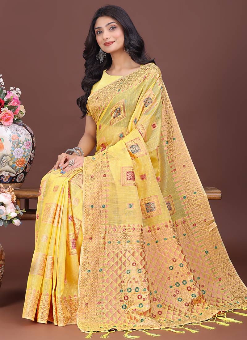 | Product Name | Yellow Color Woven Linen Cotton Saree | |