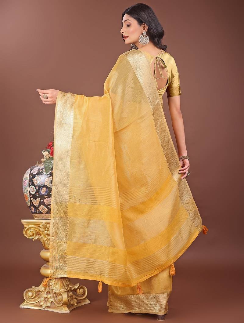 | Product Name | Yellow Color Zari Border Orgenza Saree With Blouse | |