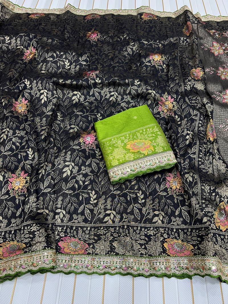 | Product Name | Black Color Dola S Ilk Blnd With Meenakari Zari Weaving Saree | |