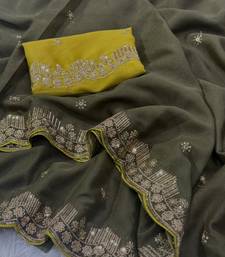 | • | Saree | : | Color- Mehendi / Fabric- Georgette |