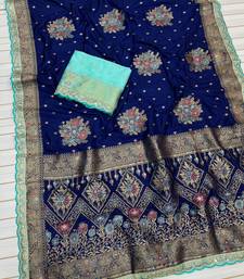 Navy blue color dola silk blnd zari weaving with meenakari wedding saree