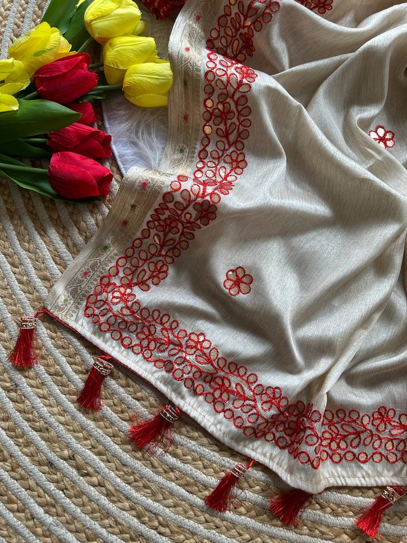 Off-white color gotapatti work & zari weaving border tussar silk saree