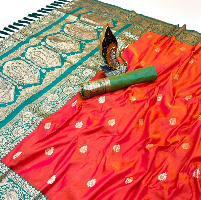 | Product Name | Orange Banarasi Silk Saree With Zari Weaving Work | |
