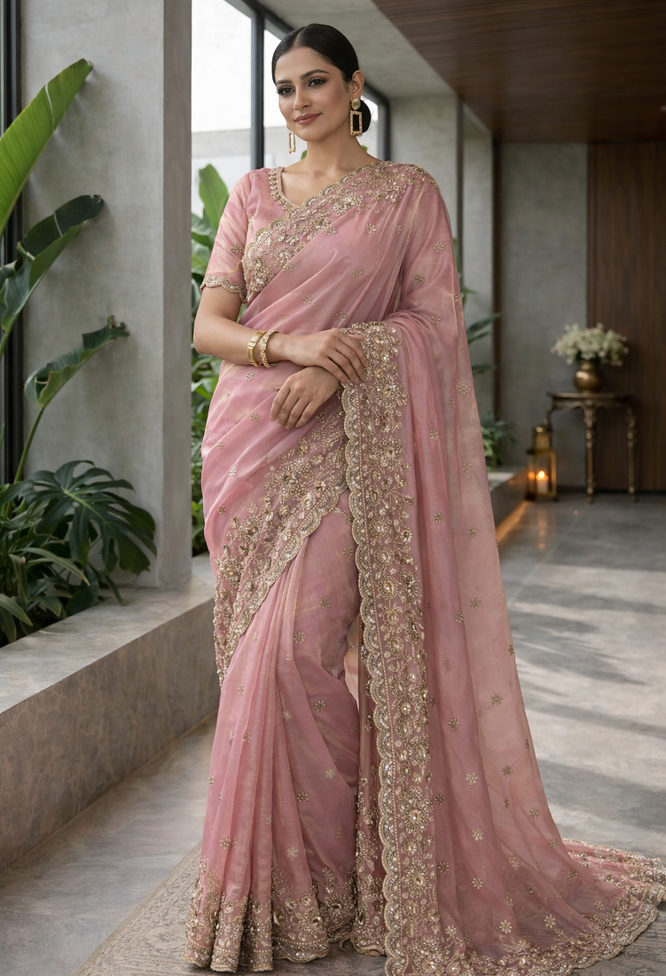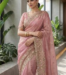 | Product Name | Pink Color Beautiful Embroidery Detailling Satin Silk Saree | |