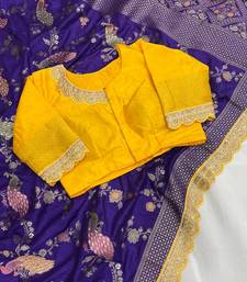 Purple color wedding special dola silk blnd zari weaving saree