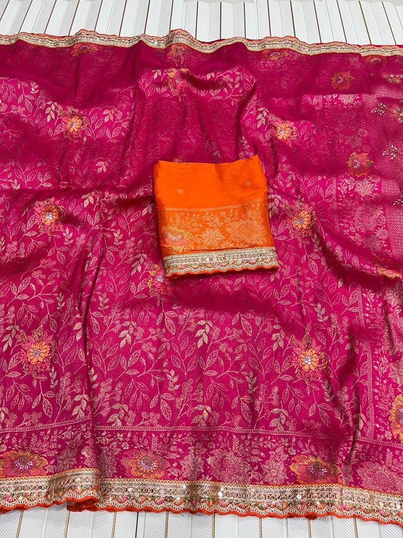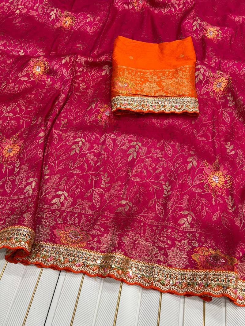 | Product Name | Rani Pink Color Dola S Ilk Blnd With Meenakari Zari Weaving Saree | |