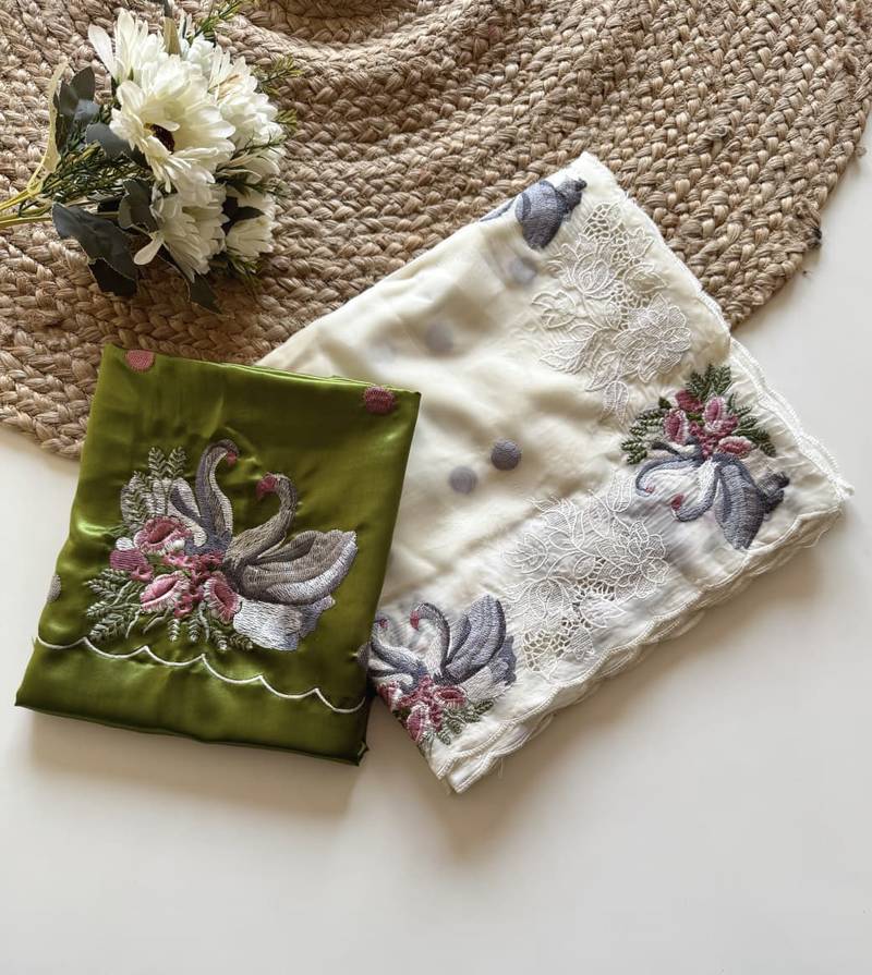 | Product Name | White Color Crystal Tissue Silk Embroidered Saree | |