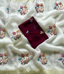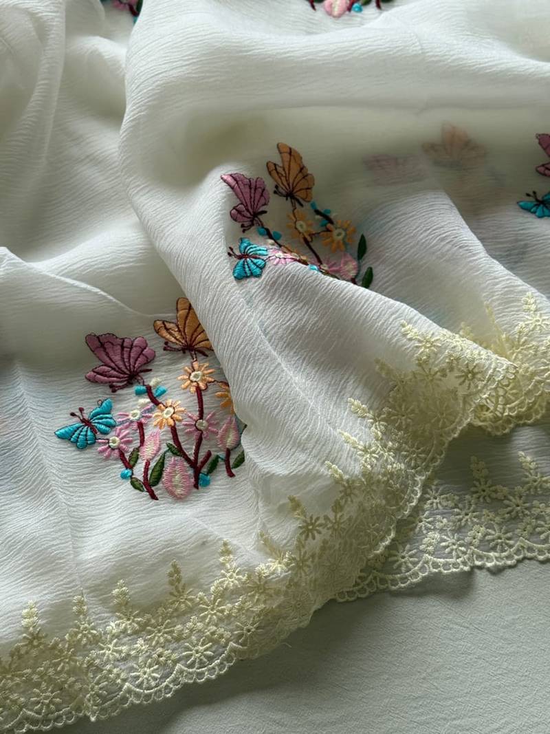 | Product Name | White Color Embroidered Crush Georgette Chiffon Saree | |