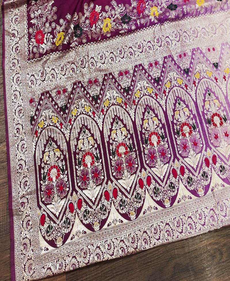 Wine color zari weaving meenakari border viscose dolla silk saree