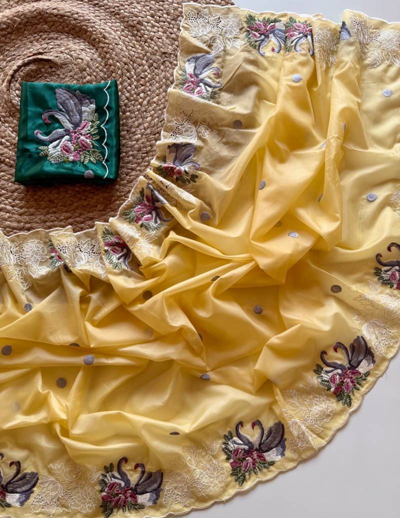 | Product Name | Yellow Color Crystal Tissue Silk Embroidered Saree | |