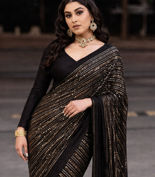 Black color all over sequence work georgette saree