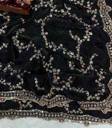 Black color beads and sequence embroidery work space silk saree