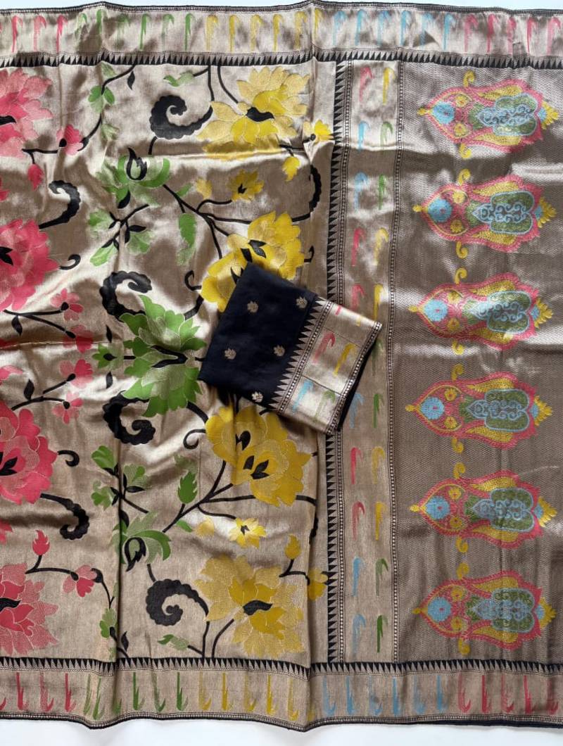 Product Name Black Color Paithani Jari Weaving Tissue Viscose Saree