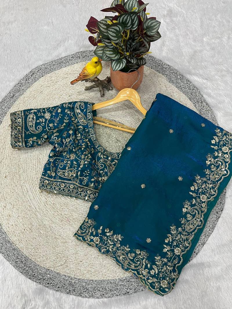 | Product Name | Blue Color Embroidered Satin Silk Blend Saree | |