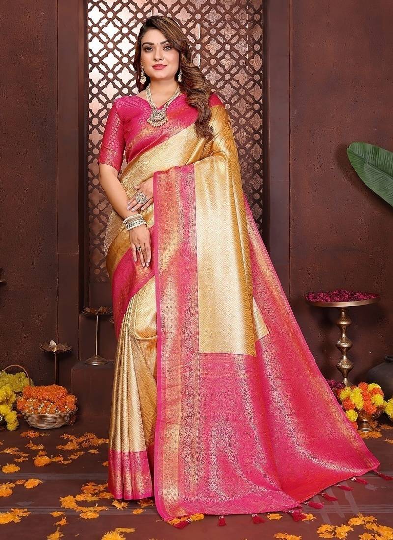 | Product Name | Cream Color Zari Weaving Banarasi Tissue Silk Blend Saree | |