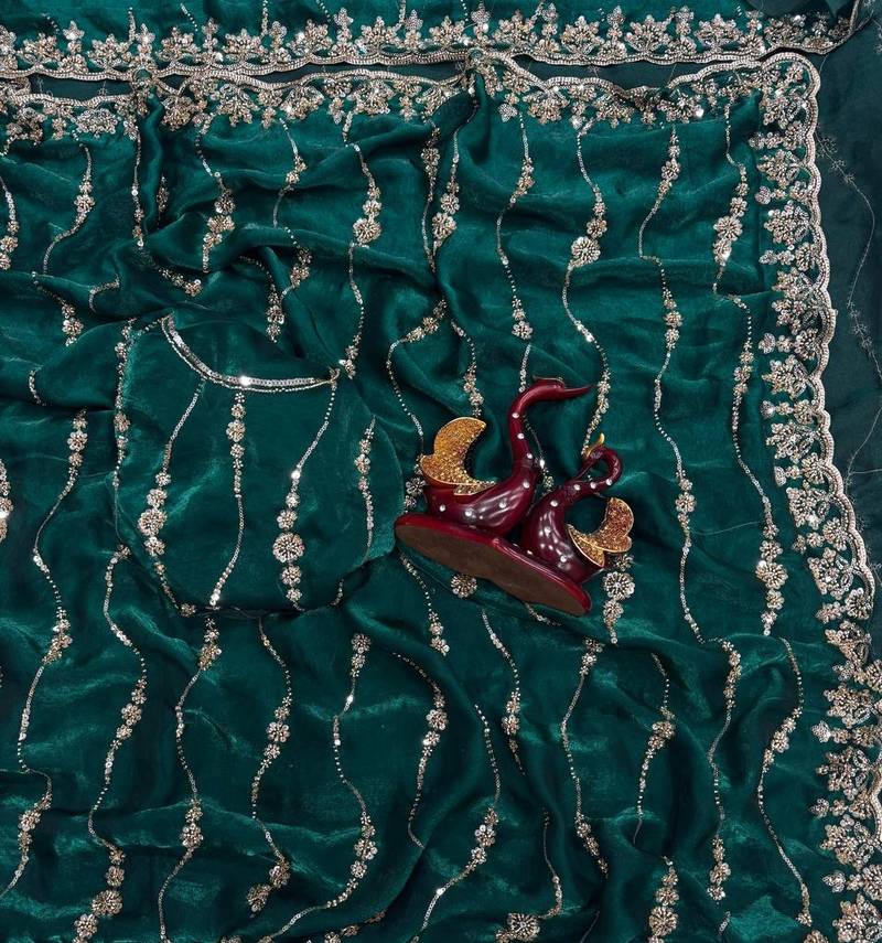 | Product Name | Dark Green Color Embroidered Space Silk Saree | |