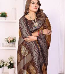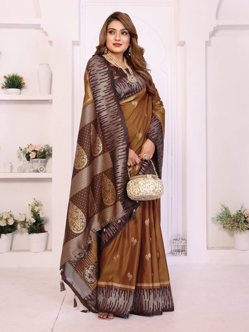 Dark mustard color zari weaving silk blend saree