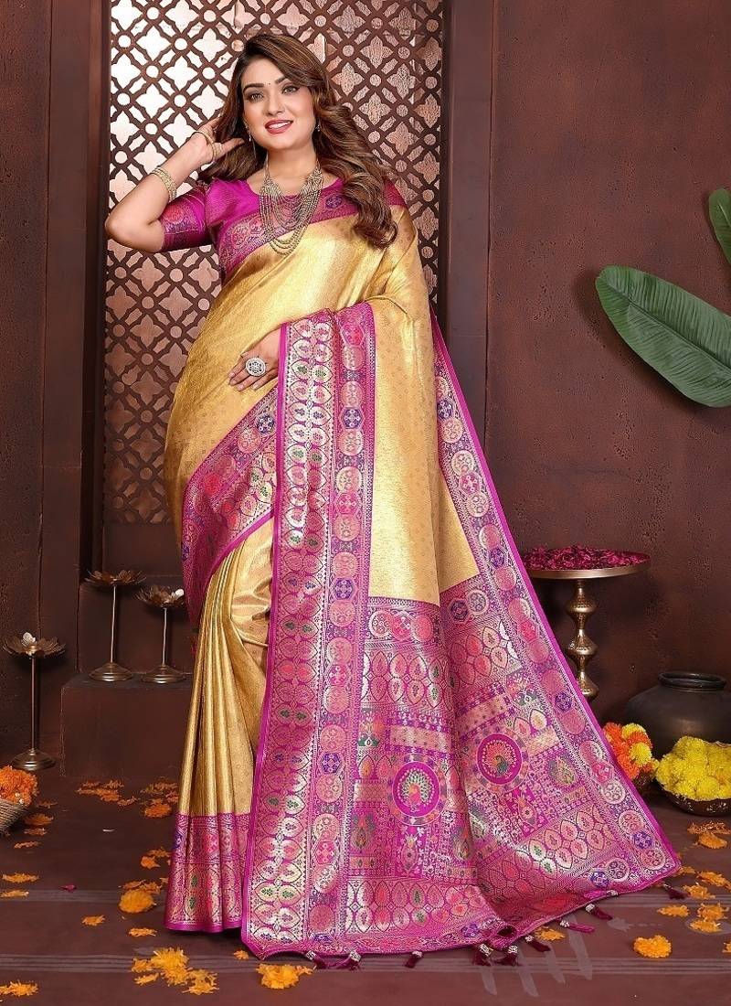 | Product Name | Gold Color Zari Weaving Banarasi Tissue Silk Blend Saree | |