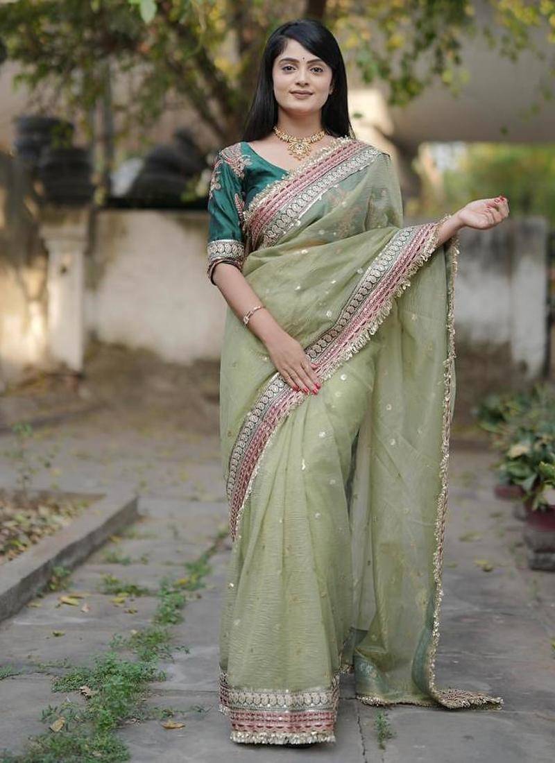 | Product Name | Green Color Embroidered Banarasi Crush Saree | |