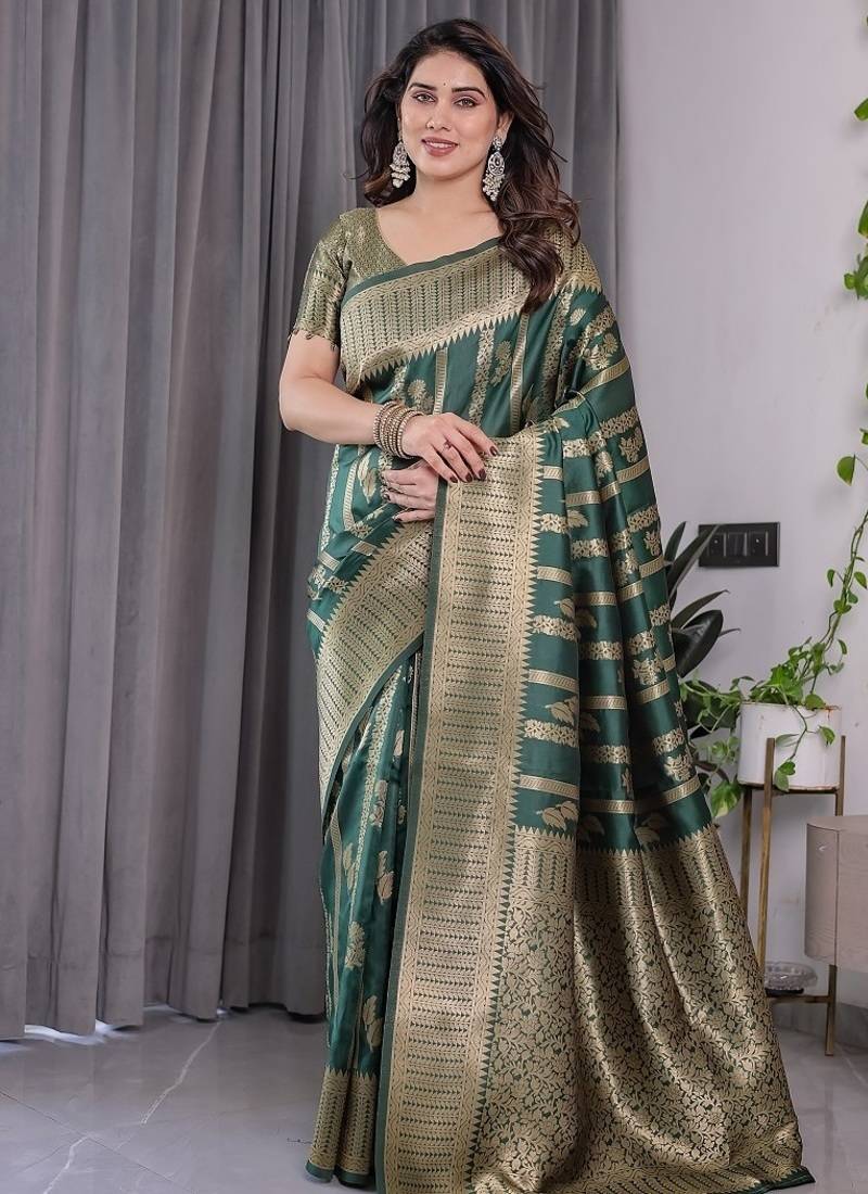 Product Name Green Color Zari Woven Banarasi Art Silk Saree