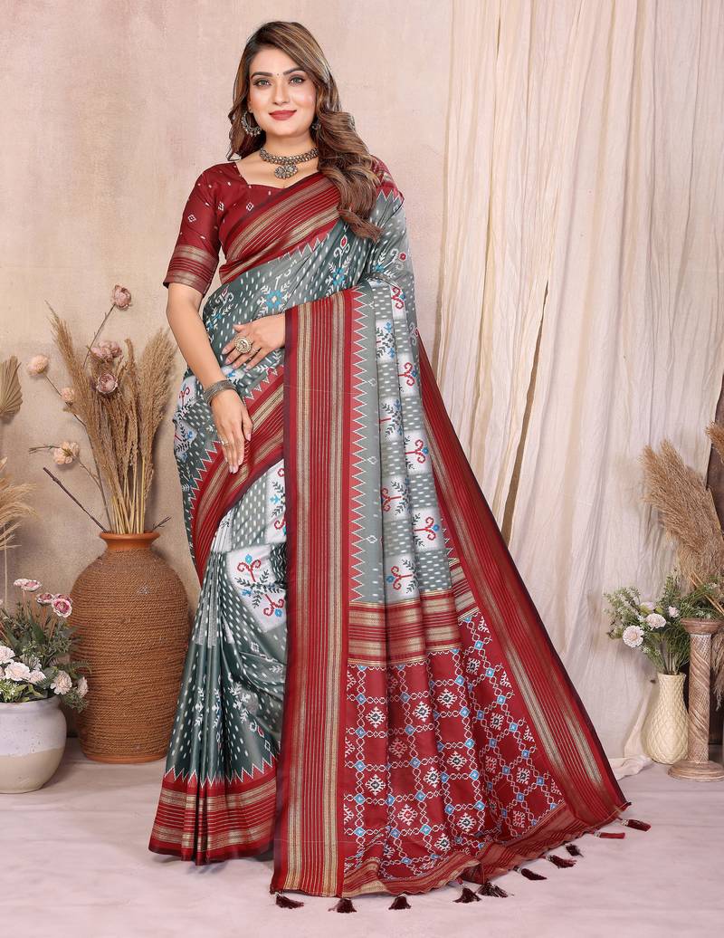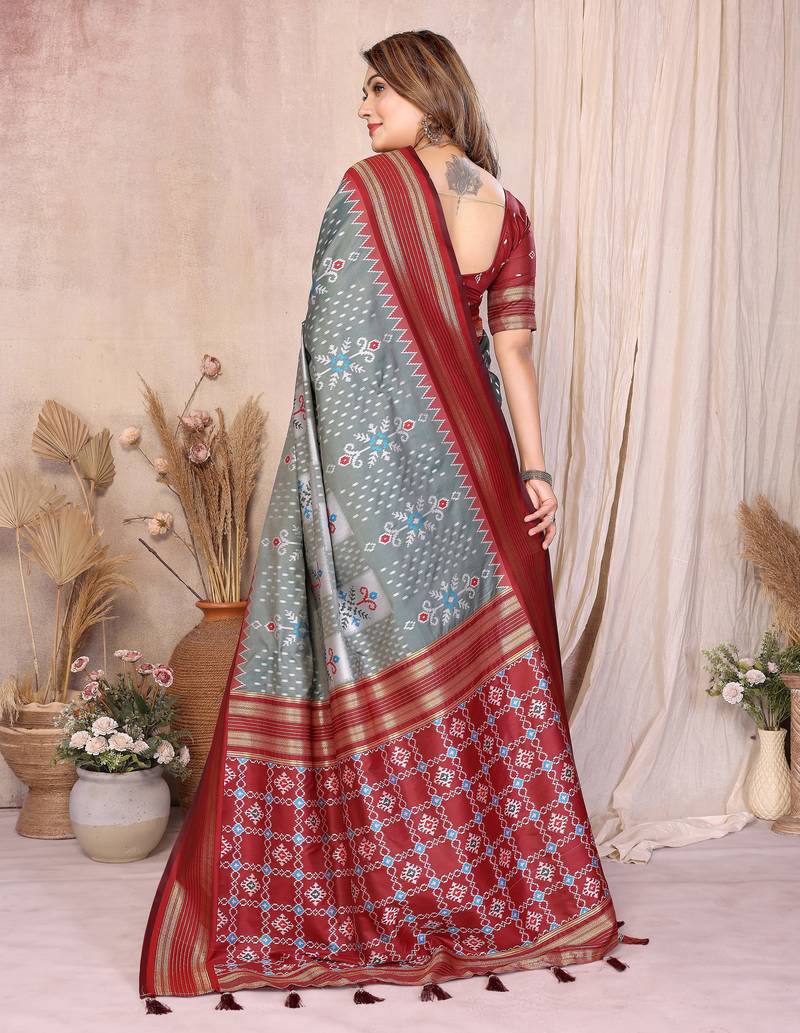 | Product Name | Grey Color Ikat Weaving Silk Saree | |