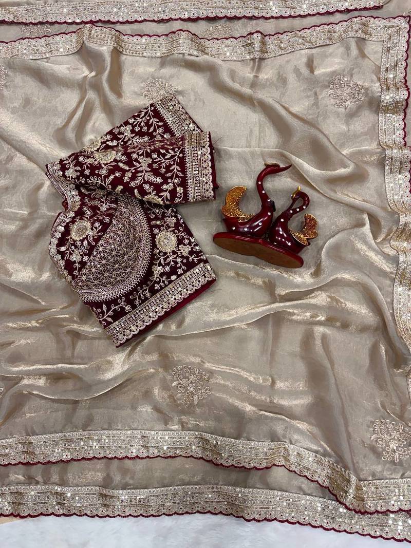 | Product Name | Grey Color Sequance And Zari Embroidery Work Frendy Satin Saree | |