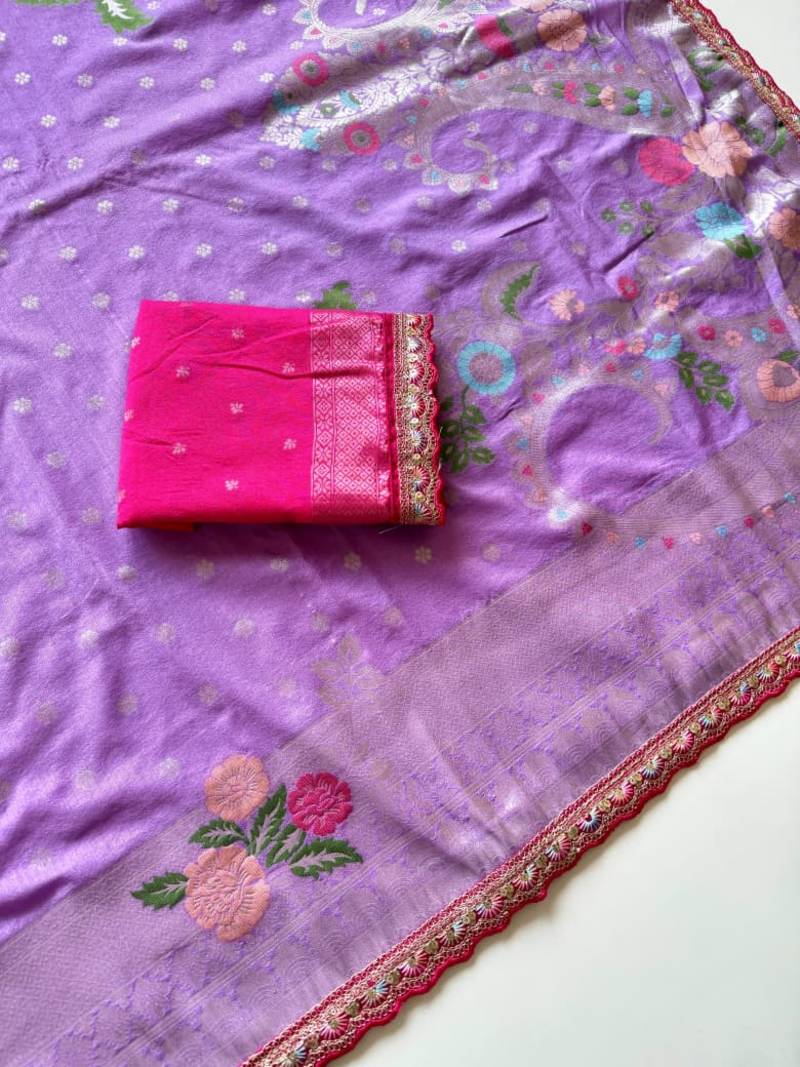 | Product Name | Lavender Color Georgette Minakari Petch Work Georgette Khadi Saree | |