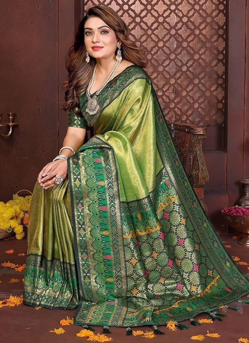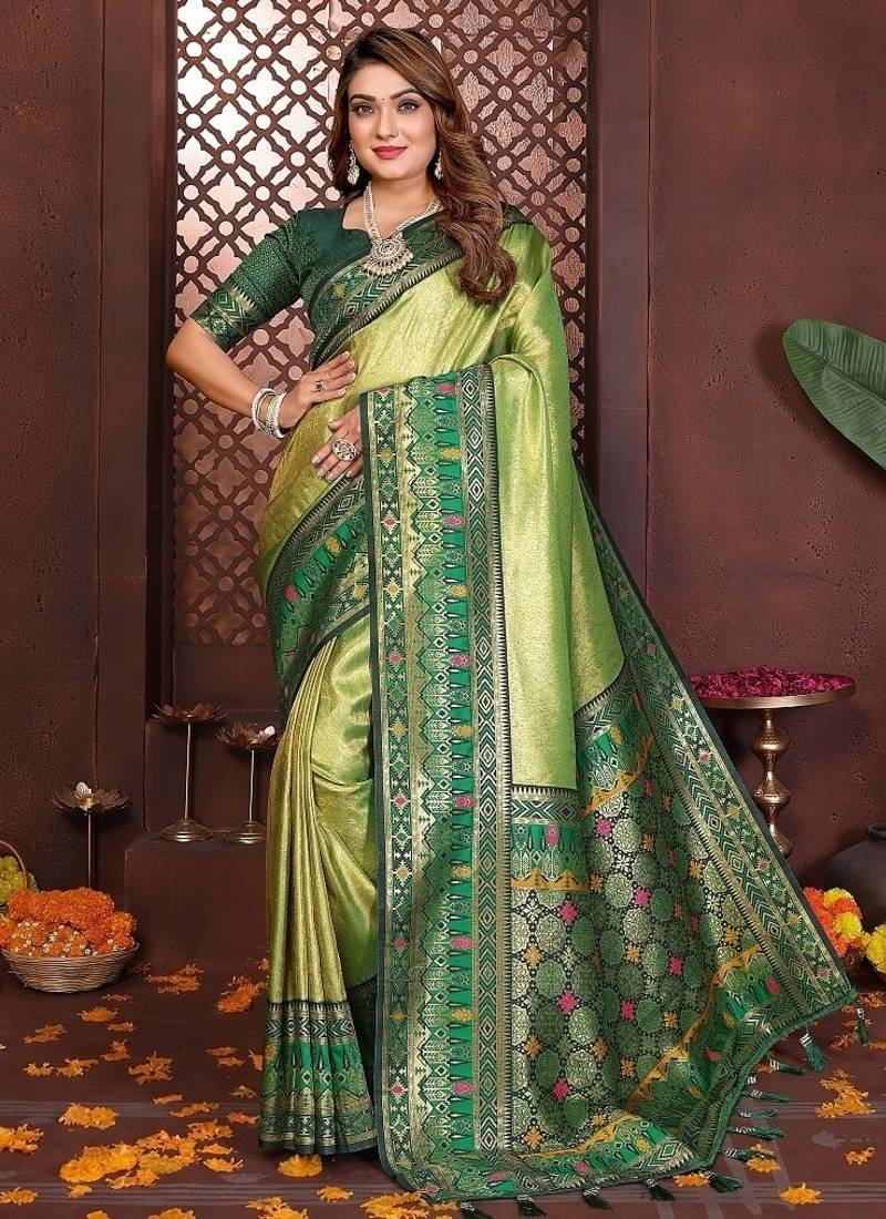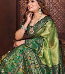Light green color zari weaving banarasi tissue silk blend saree