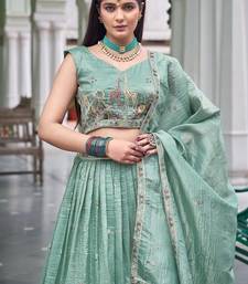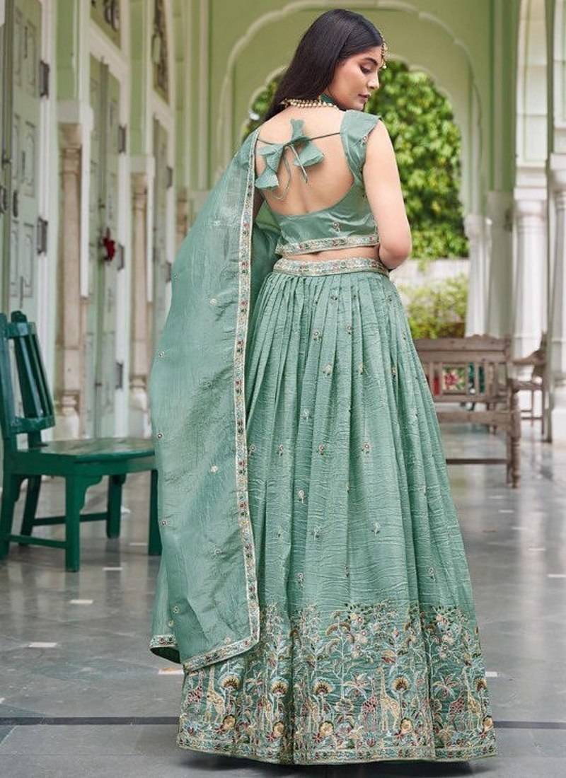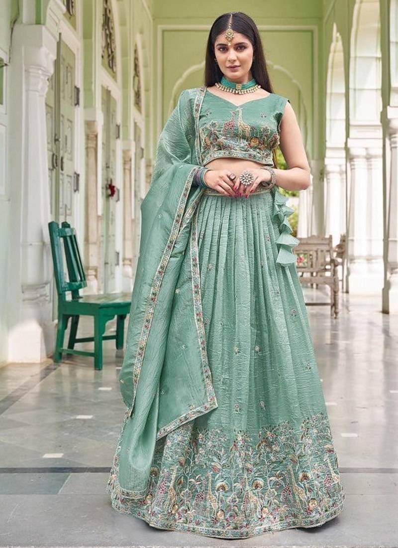 Light turquoise color thread embroidery with sequin work gold crush silk lehenga choli set