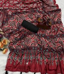 Maroon color ajarakh print real mirror work crepe silk saree
