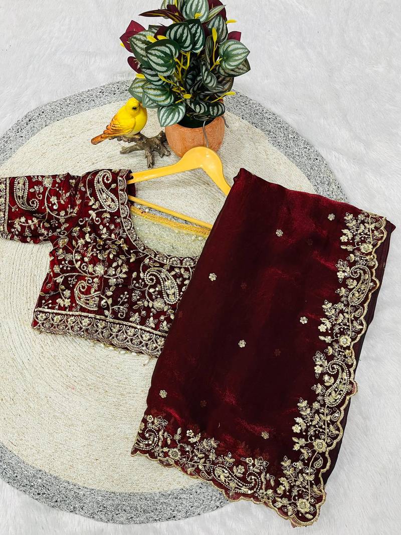 | • | Saree | : | Color- Maroon / Fabric- Satin |