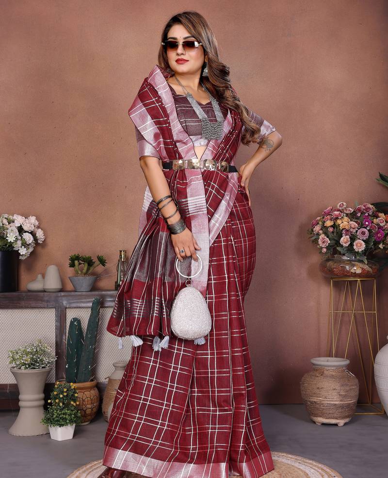 | Product Name | Maroon Color Zari Weaving Linen Saree | |