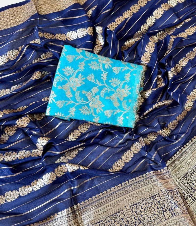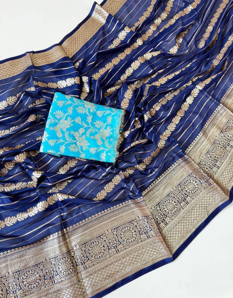 | Product Name | Navy Blue Color Jari Jaqurad Weaving Work Georgette Saree | |