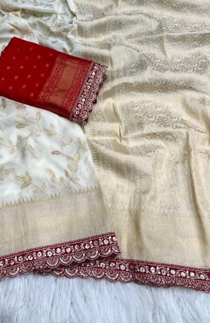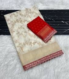 Off White Color Jaqurad Weaving work Georgette Khadi Saree