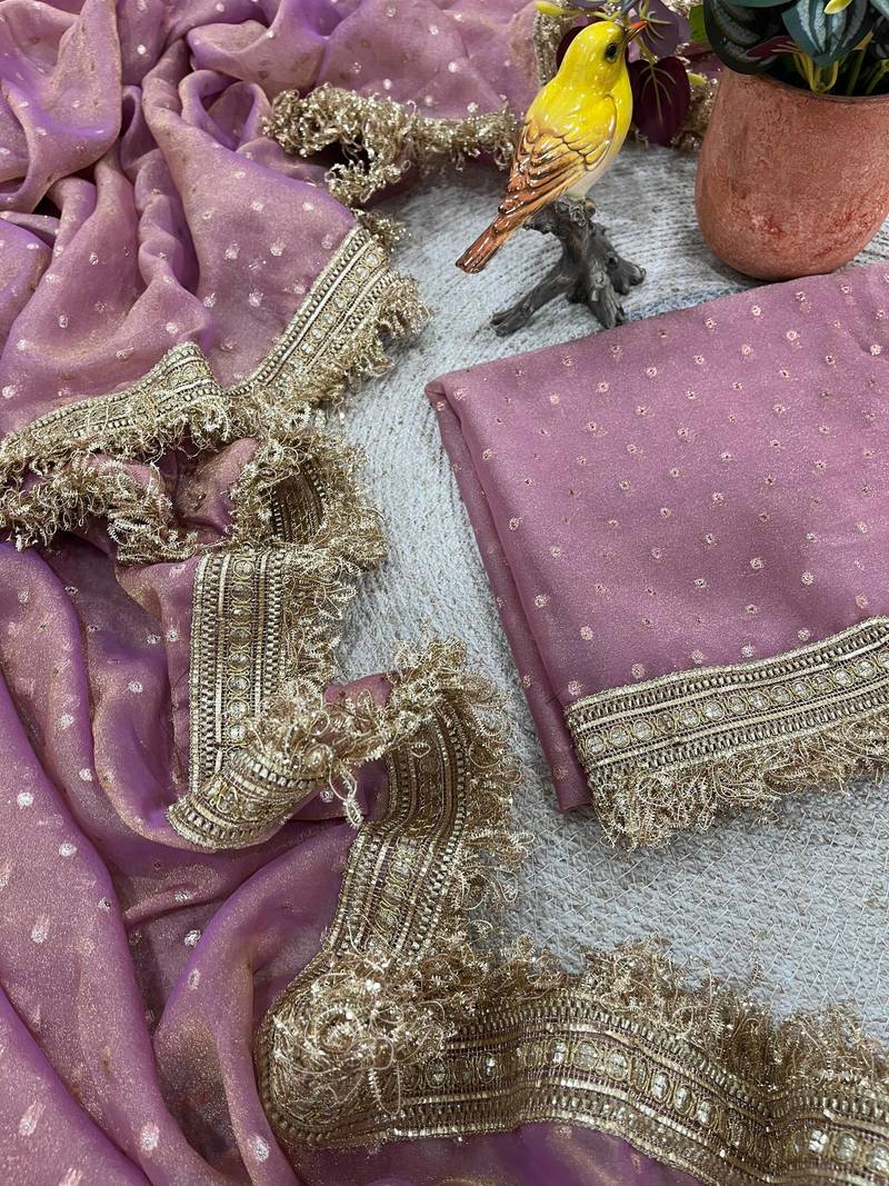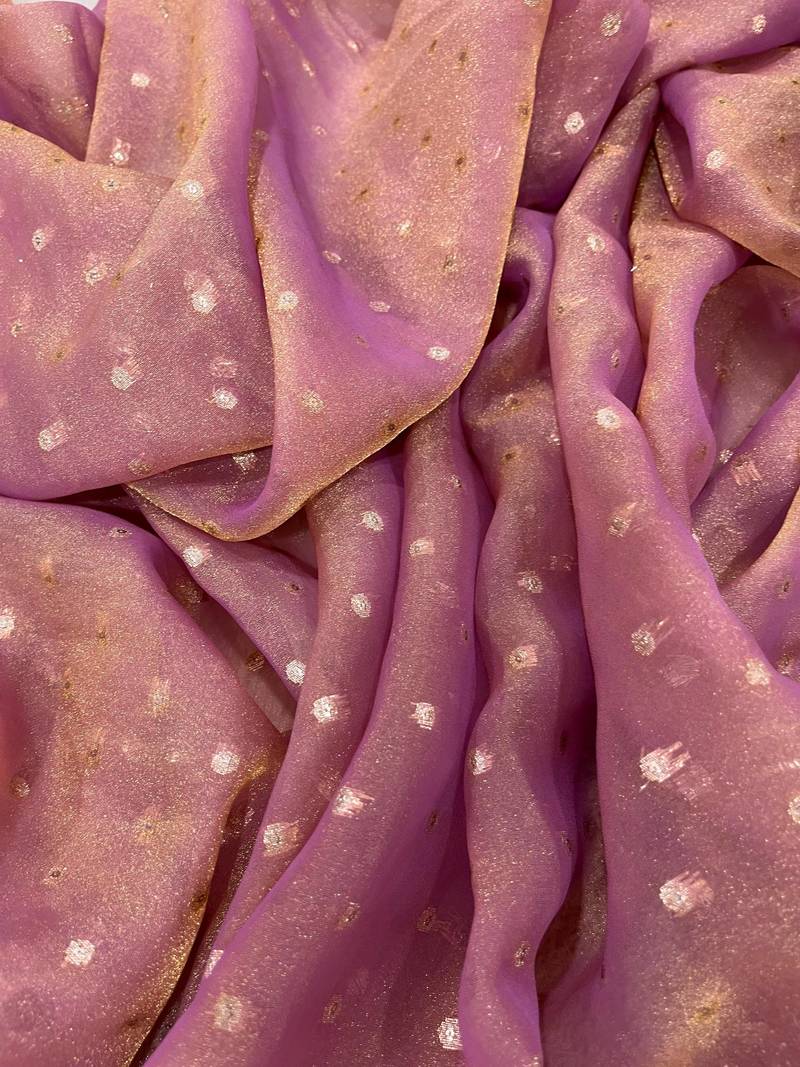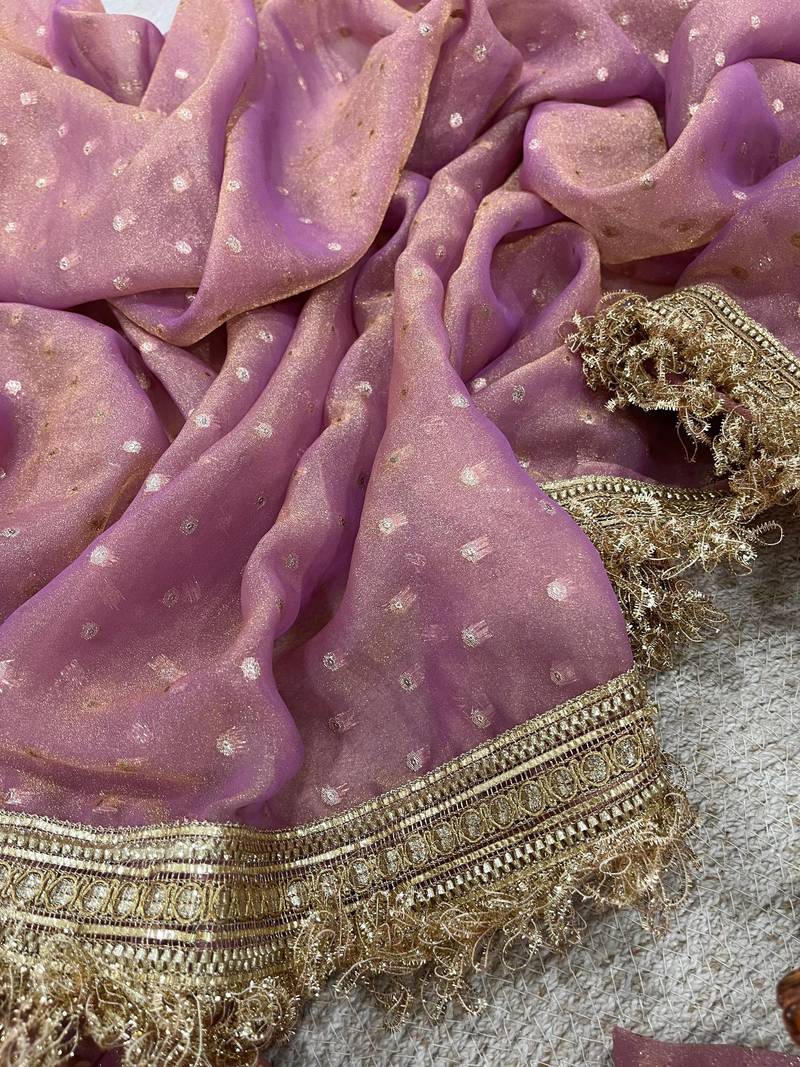 Onion pink color jari woven butti work moss silk saree