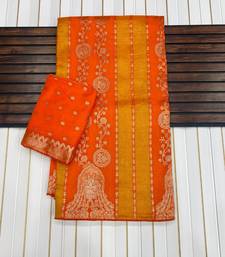 Orange color jari jaqurad weaving chhinya tisu silk blend saree