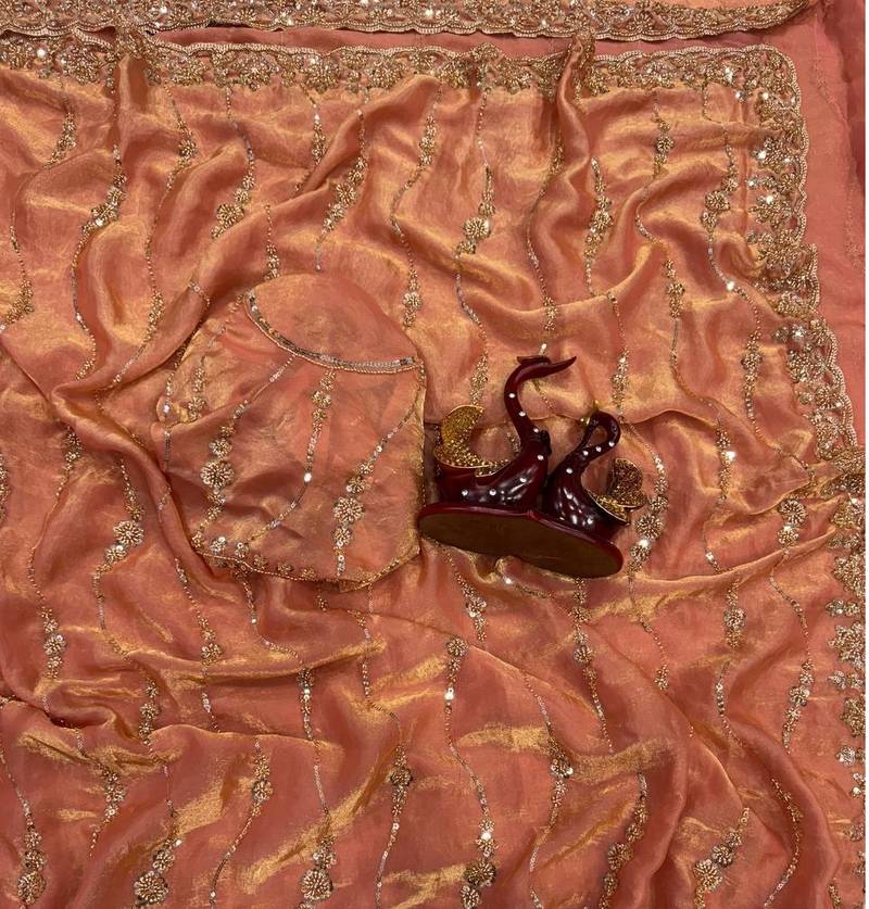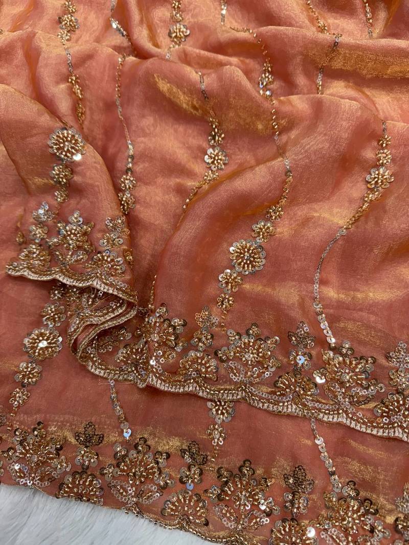 | Product Name | Peach Color Embroidered Space Silk Saree | |