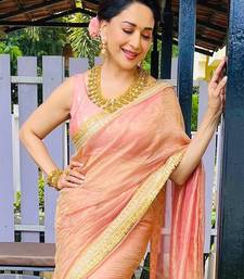 Product Name Peach Color Sequance And Dori Embroidery Work Banarsi Crush Twill Saree