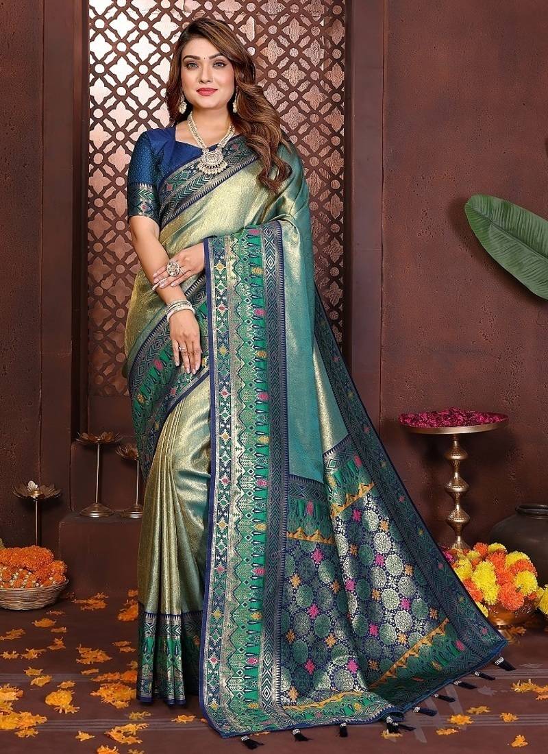 | Product Description | Saree : Banarasi Tissue Silk Sarees With All Over Weaving Butties With Rich Contrast Paithani Woven Borders And Contrast Paithani Woven Classic Pallu Blouse : Banarasi Tissue Silk Blouse |