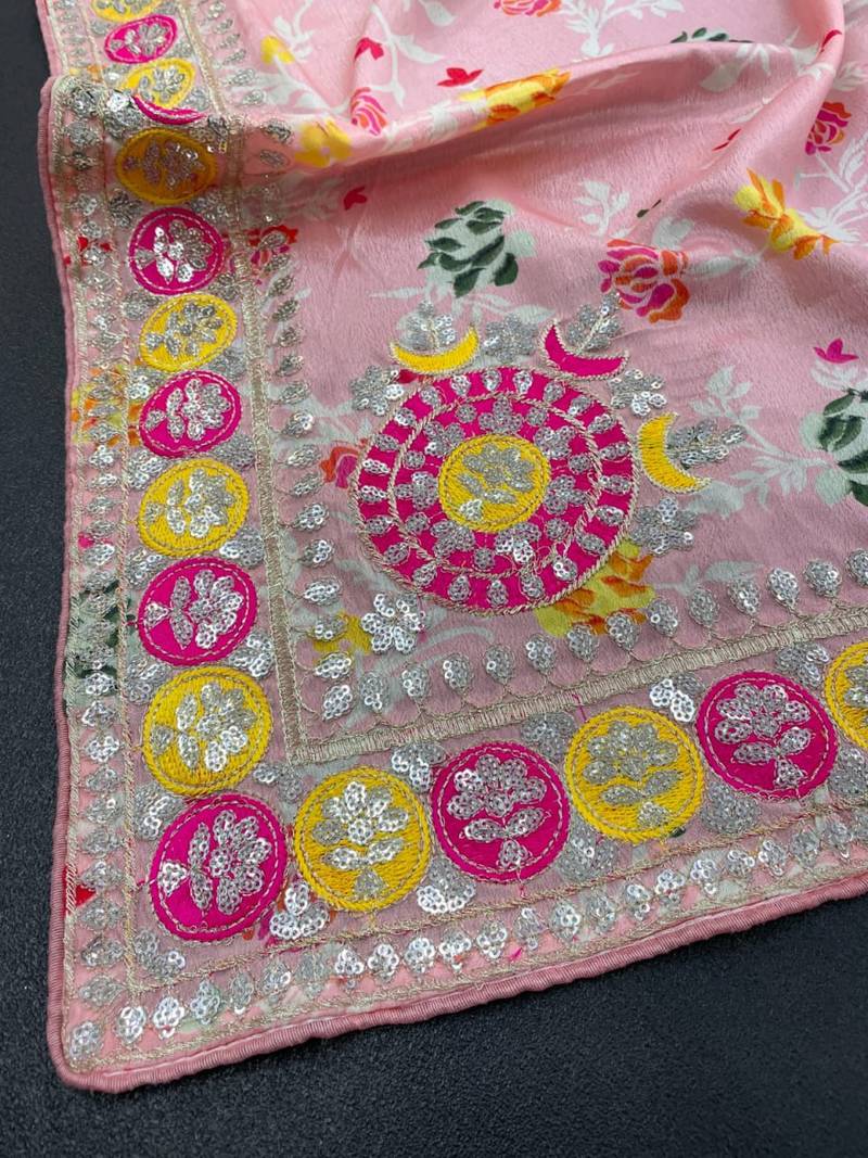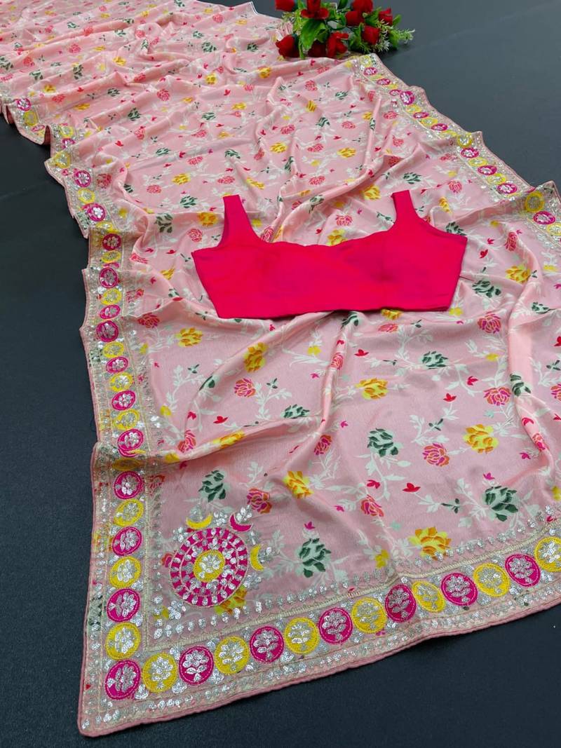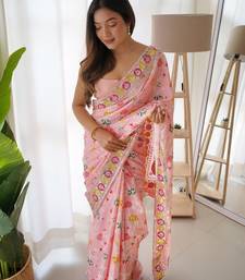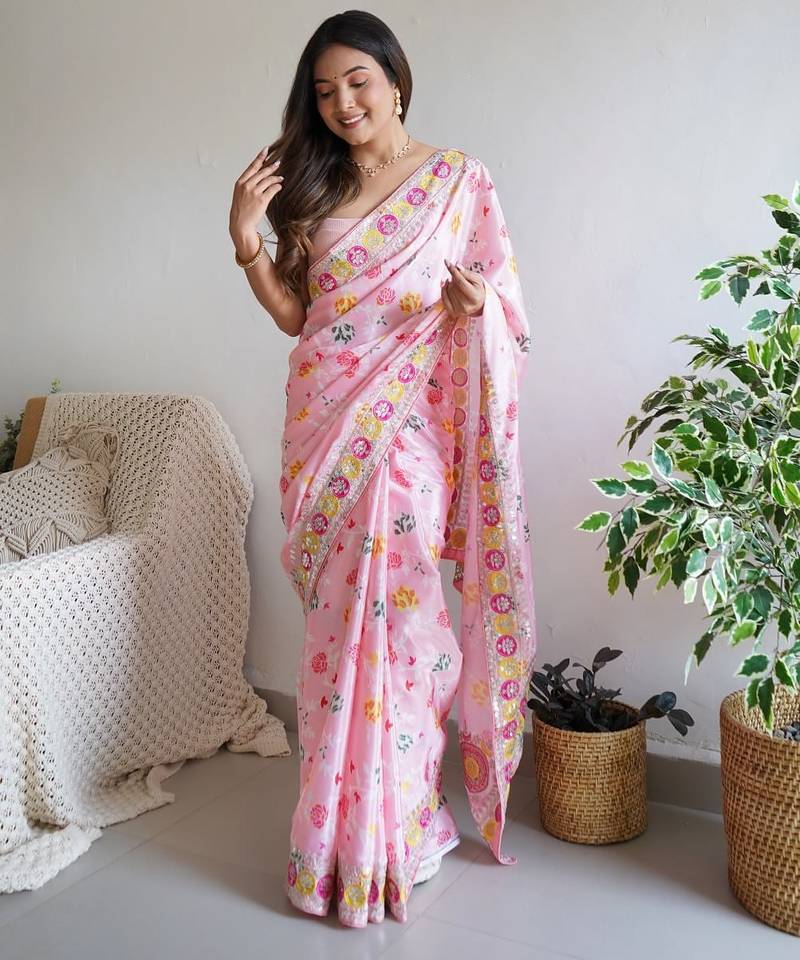 | Product Name | Pink Color Embroidered Chinon Silk Blend Saree | |