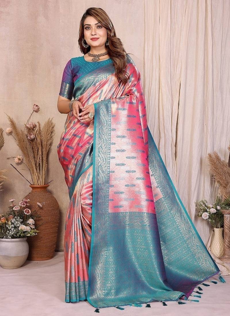 | Product Name | Pink Color Zari Weaving Banarasi Tissue Silk Saree | |