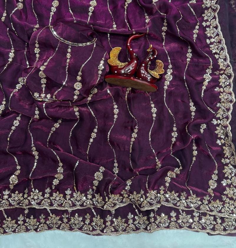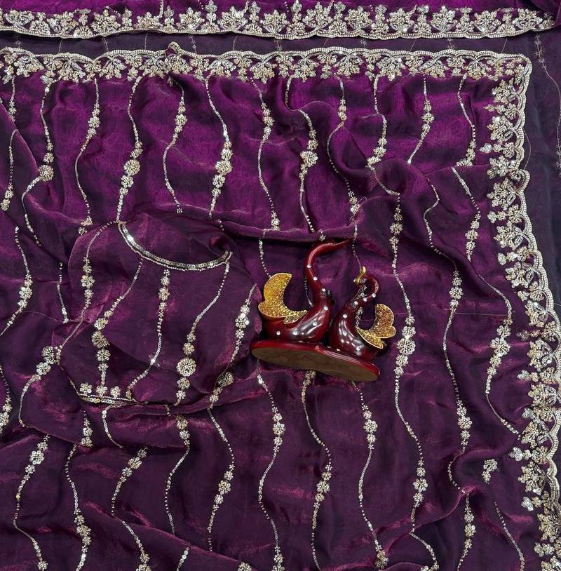 | Product Name | Plum Color Embroidered Space Silk Saree | |