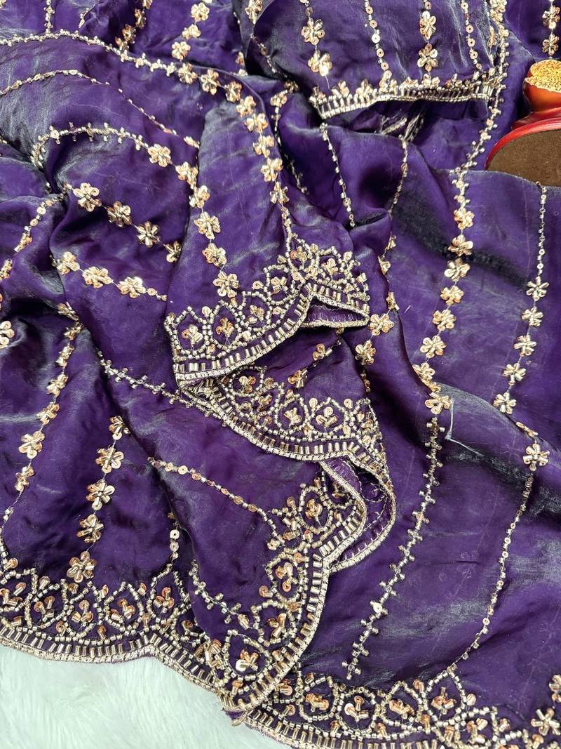 | Product Name | Purple Color Beads And Sequence Embroidery Work Space Silk Saree | |