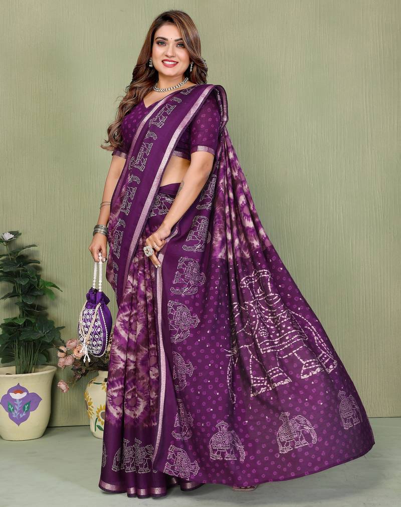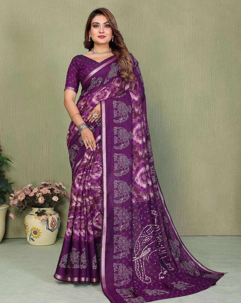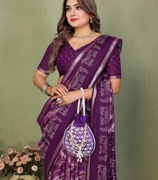 | • | Saree | : | Color- Purple / Fabric- Cotton |