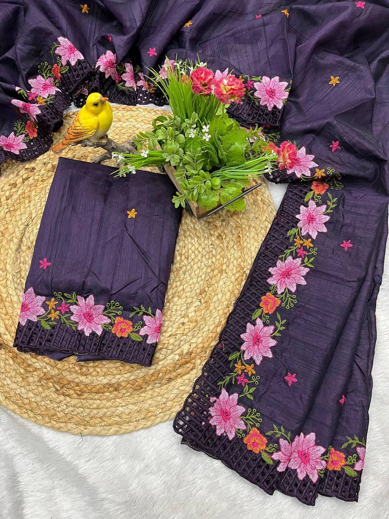 | Product Name | Purple Color Multi Thread Embroidery Work Manipuri Silk Saree | |