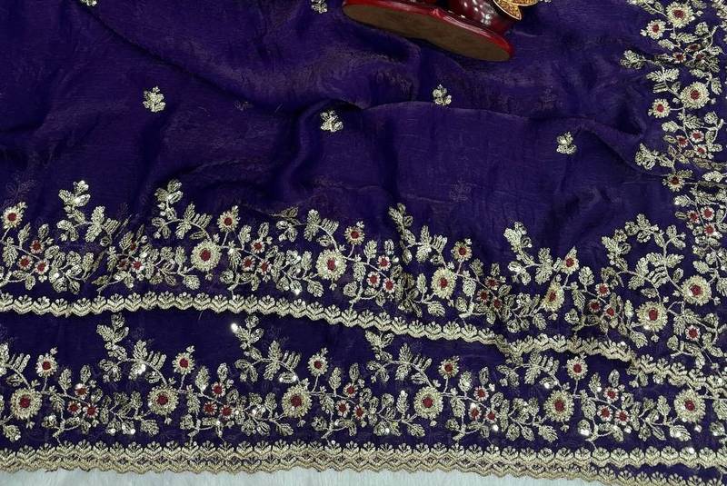 | Product Name | Purple Color Sequence Embroidery Work Frendy Chiffon Saree | |