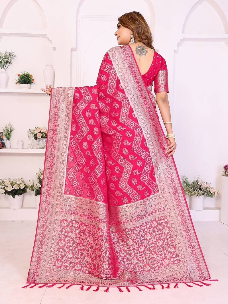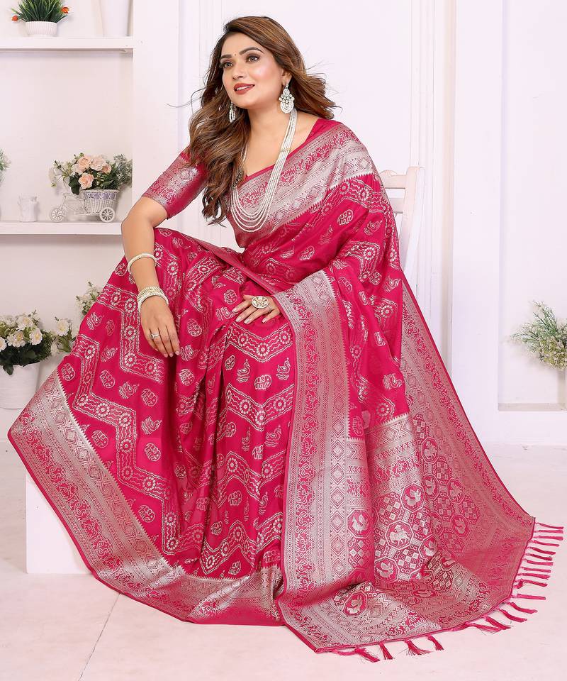 | Product Name | Rani Pink Color Zari Weaving Georgette Silk Saree | |