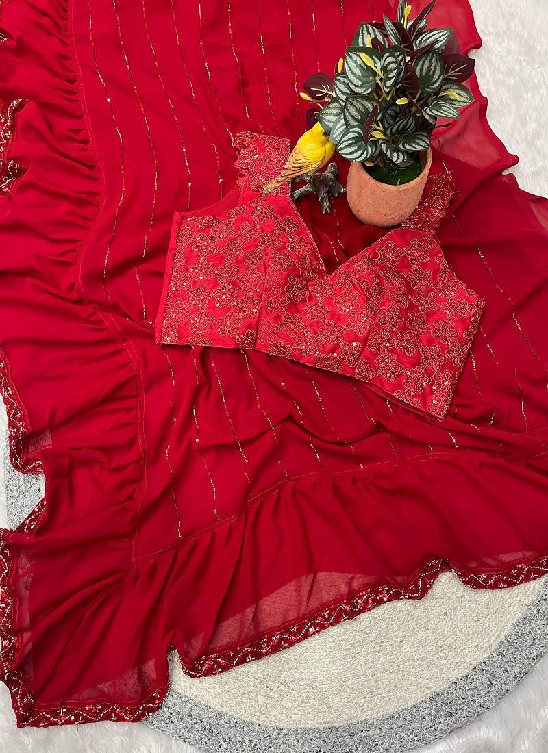 | Product Name | Red Color Beads And Sequins Work Faux Georgette Saree | |