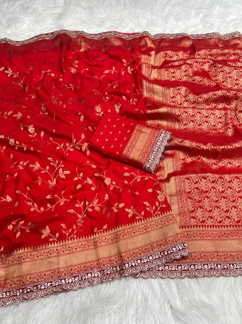 Red Color Jaqurad Weaving work Georgette Khadi Saree