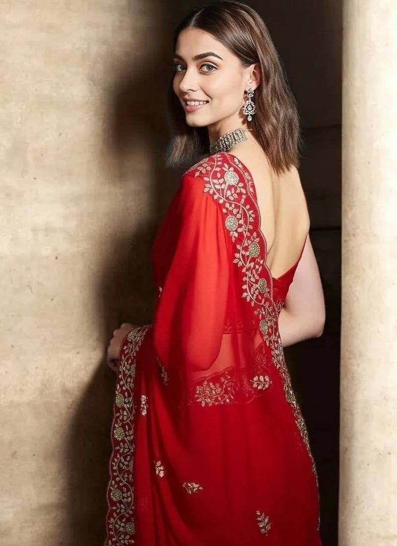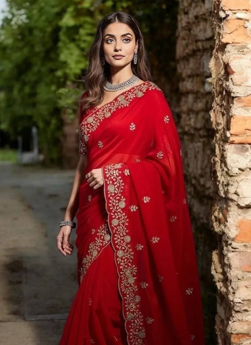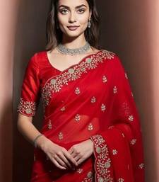 | Product Name | Red Color Plain Saree With Sequins Embroidery And Jaipuri Dori Work Satin Silk Blend Saree | |